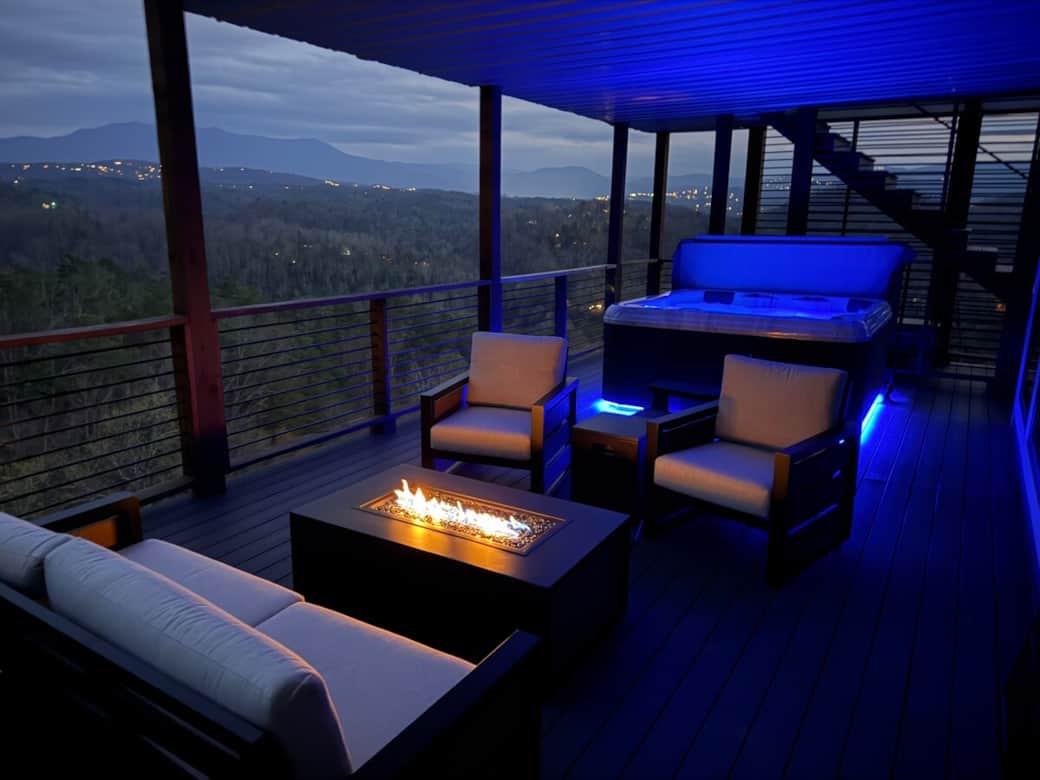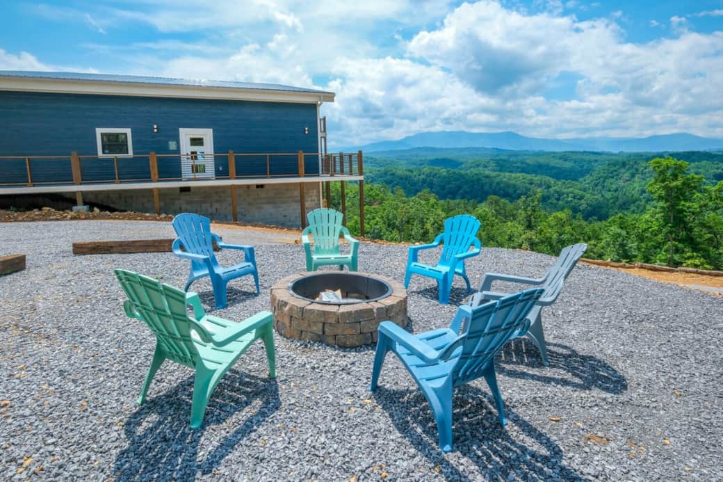 Cabin with hot tub and fire pit