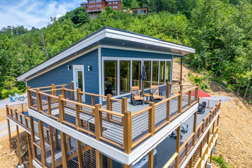 Couples’ cabin with private hot tub and panoramic mountain views